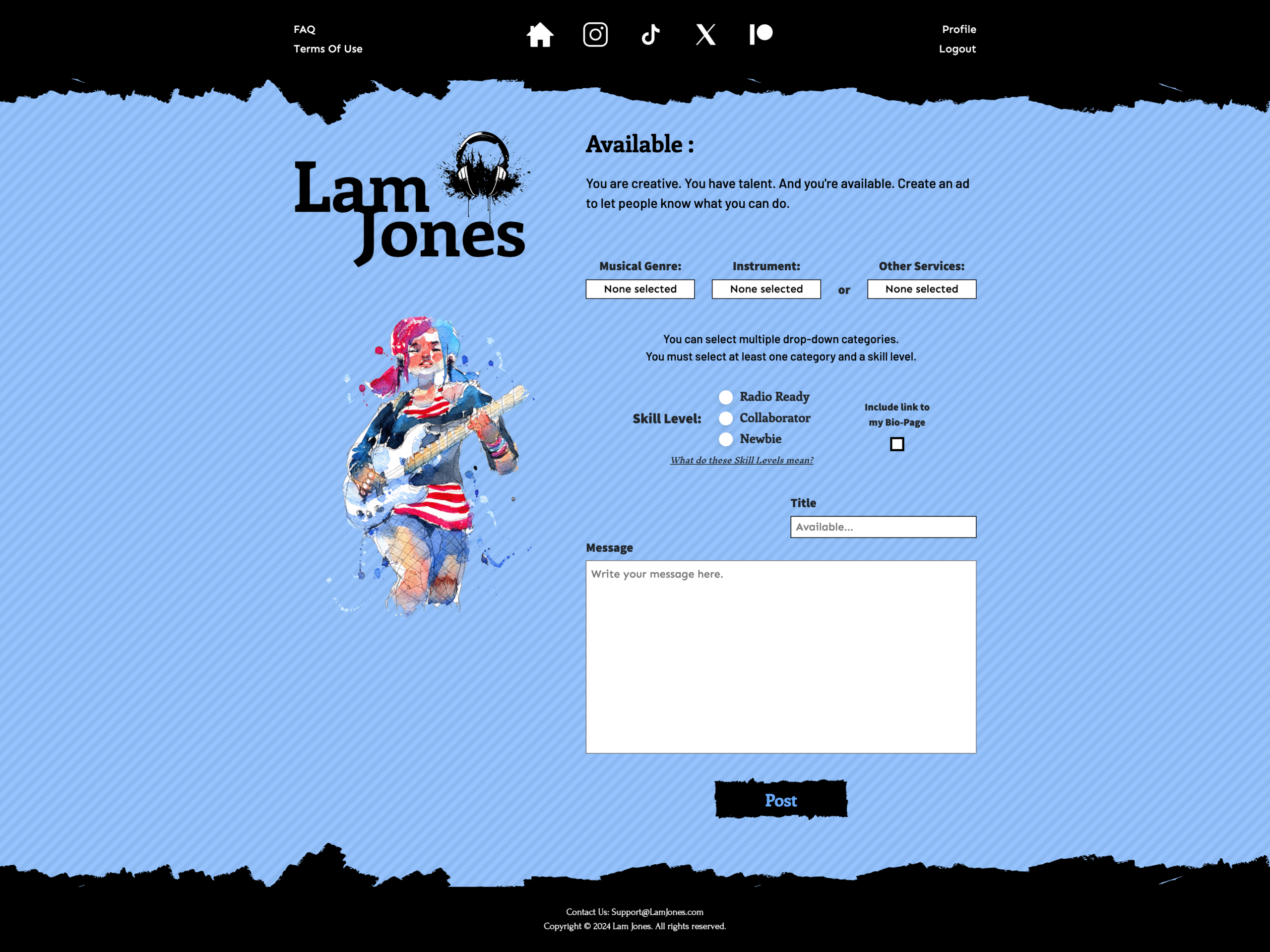 By empowering artists to connect, collaborate, and create professional-quality music, Lam Jones stands as a digital hub for the global music community.